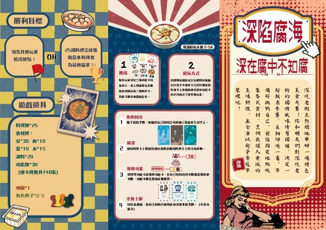 在課程中,教師指導學生從文化研究到遊戲原型設計的全過程,包括素材搜集、故事架構設計、遊戲機制開發、測試與優化。學生以深坑文化為基礎設計一款完整的桌遊,並在結束課程時進行成果展示。最終的課程成果不僅是一款遊戲,更是對本地文化的具體轉譯與再創造,學生通過此過程深刻理解文化保護與傳承的重要性,並掌握文化遊戲化設計的核心方法。