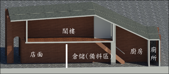 透過業師協同、深坑老街建物導覽與實地丈量深坑建築物(20 薑母茶、43 徐媽媽醬菜、45 賺錢湯、84 泥沙皮件、88 肉乾店、28 豆豆先生、99 微風肉鬆、67 包包店、112 豆腐娘、141 好家園)後,以 Autodesk Revit 建立 3D 模型,並完成穿越動畫。