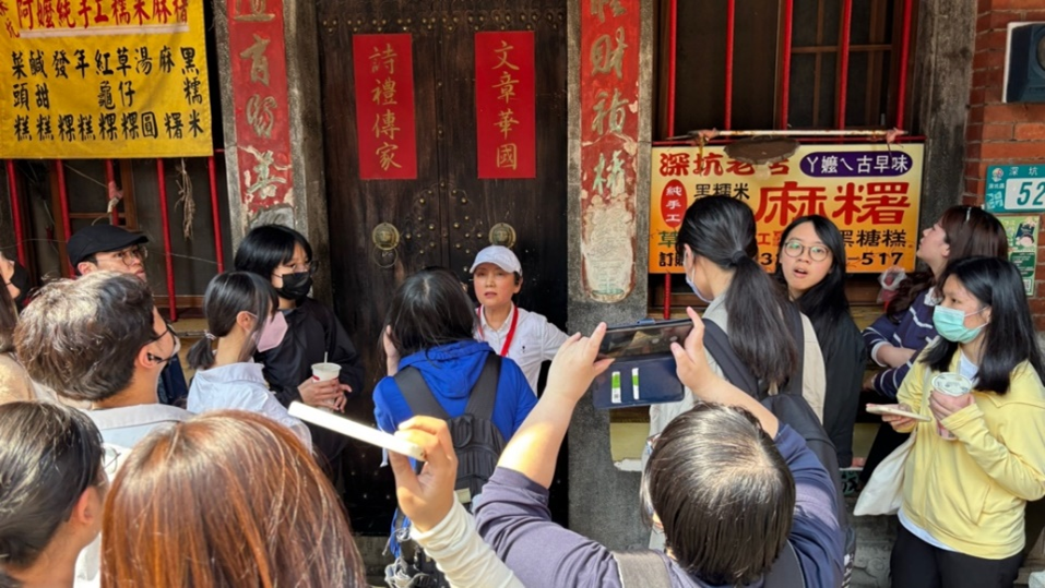 課程以「深坑」為核心場域,安排學生進行實地導覽與訪談活動。授課教師帶領學生走訪深坑地區,透過當地資深導覽人員帶隊說明講解,了解地方文化、歷史發展與建築特色。不僅是一種田野調查實踐,也讓學生透過親身經歷建立對場域的感情與認同,進一步提升故事創作的真實性、感染力和想像力。