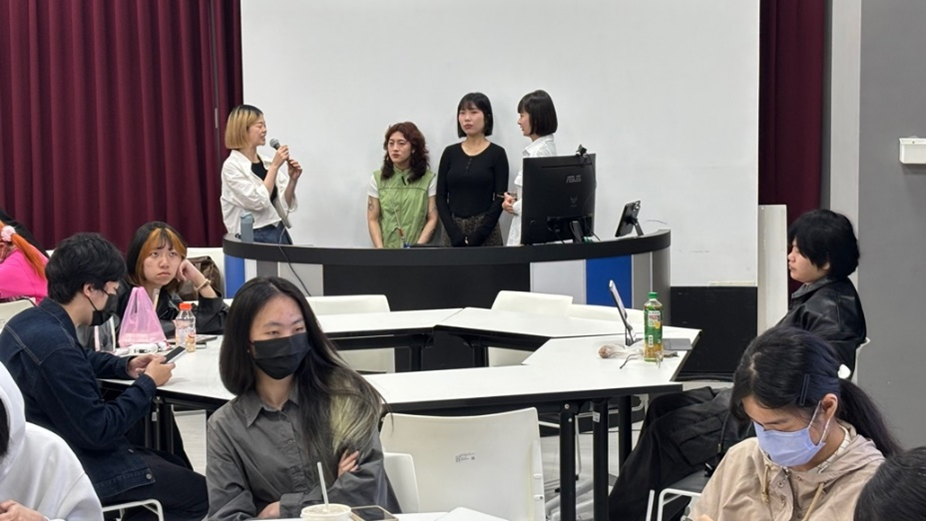 學生依據初步構想分組,每組合作完成劇本撰寫任務。討論過程中,成員共同擬定故事大綱、進行角色設計、安排情節節奏,並針對每場戲分工負責。本課程並結合校外業師協同教學(業界編劇梁舒婷),針對分場結構、角色塑造、對話設計等面向提供意見與修改建議。此分組方式目的在於模擬實際影視創作流程,培養學生的溝通協作與專業分工能力。