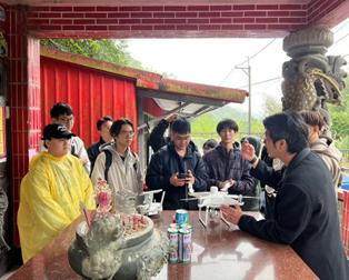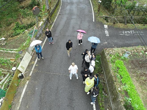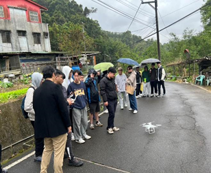 本次課程於3月28日下午在深坑北側坡地環境進行,同學們於下午一點三十分於萬順村福德宮集合,並於此進行無人機基礎教學及試飛,當日同學們共分為五組,飛別進行不同方向的飛行空拍,並將空拍成果帶回以影像融合軟體進行正射影像拼接與三維地形建模。