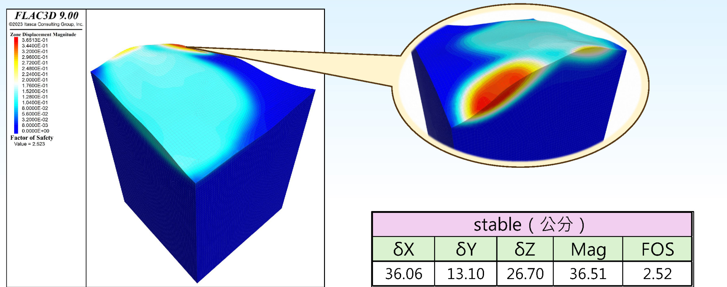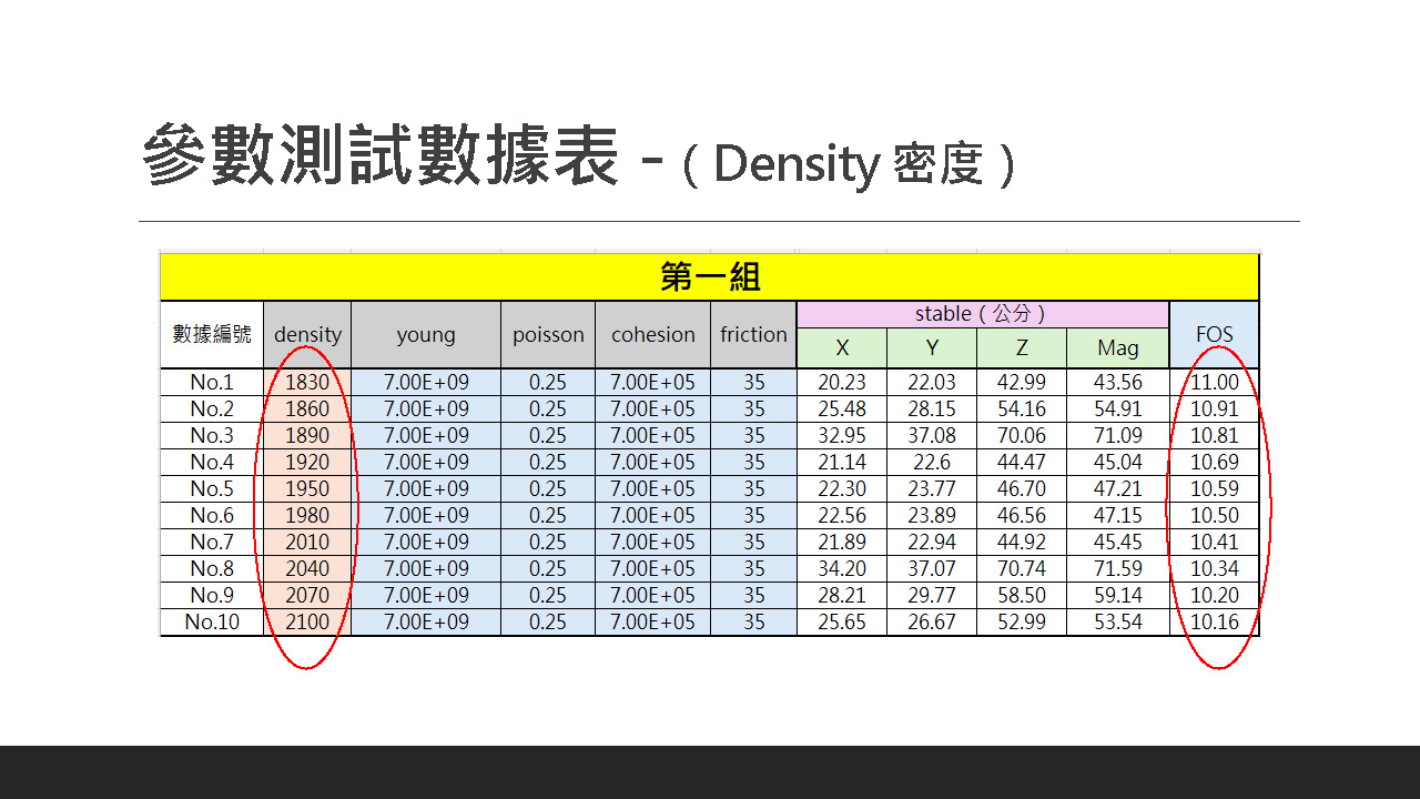 小組討論最佳的防災方案,利用 FLAC 進行數值模擬。分析不同防災方案的穩定性與變形影響,撰寫分析報告。