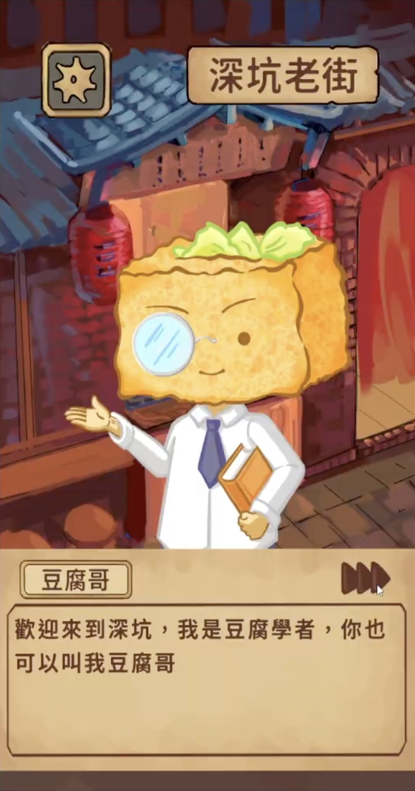 遊戲以「美食擬人化角色」為引導,遊戲作品透過虛實交錯的方式,引導玩家探索深坑老街的美食文化與歷史故事。讓玩家在解謎的過程中,不僅認識當地特色美食,更能透過實地探索與線索解讀,感受深坑的獨特風味與文化背景。
