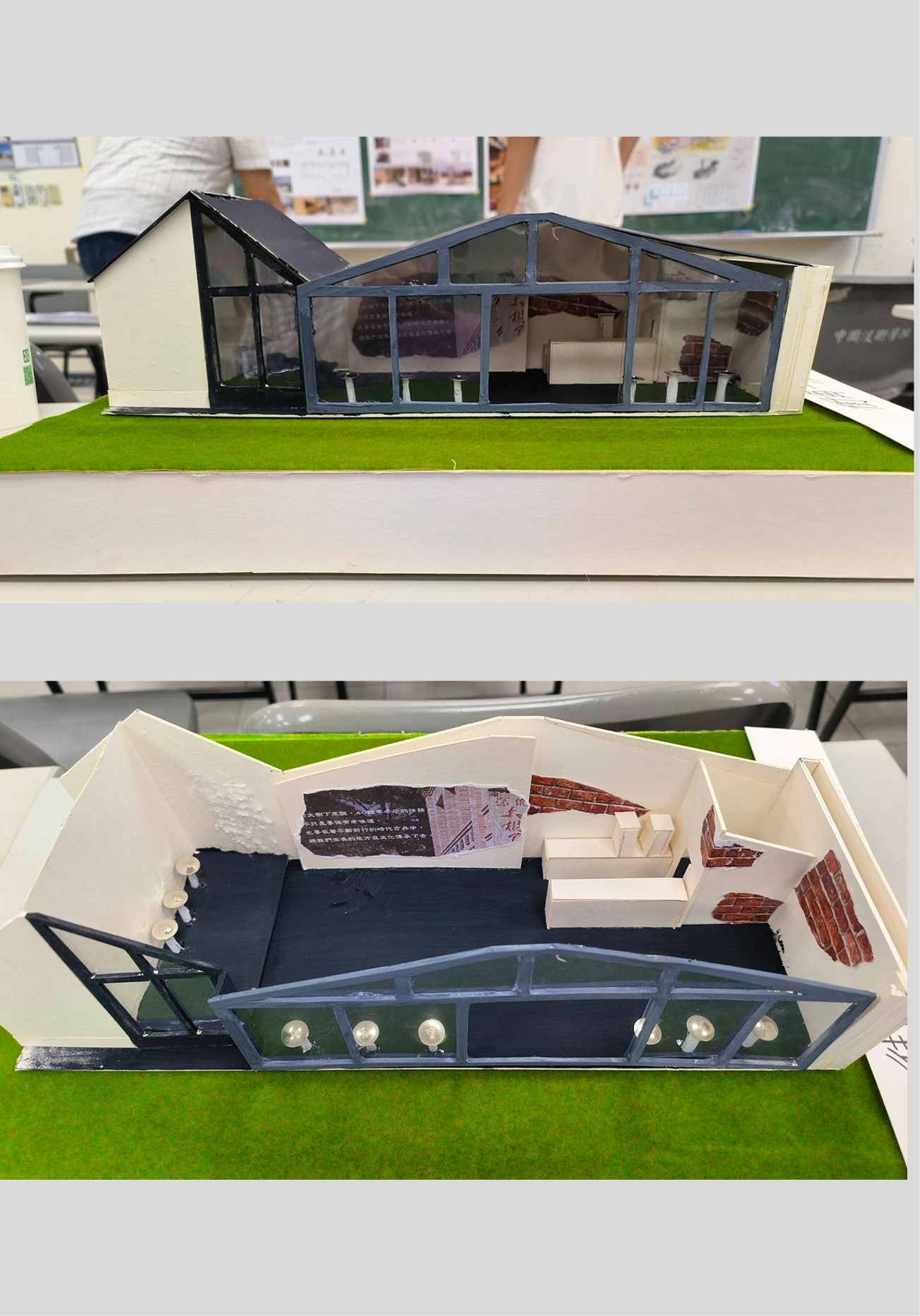 斜屋頂意象構成,呼應傳統街屋的屋頂輪廓,營造熟悉的街道記憶與視覺引導。該團隊在繁華的深坑老街製造一處可以停留的空間,給予深坑一處呼吸與緩衝的地點。
