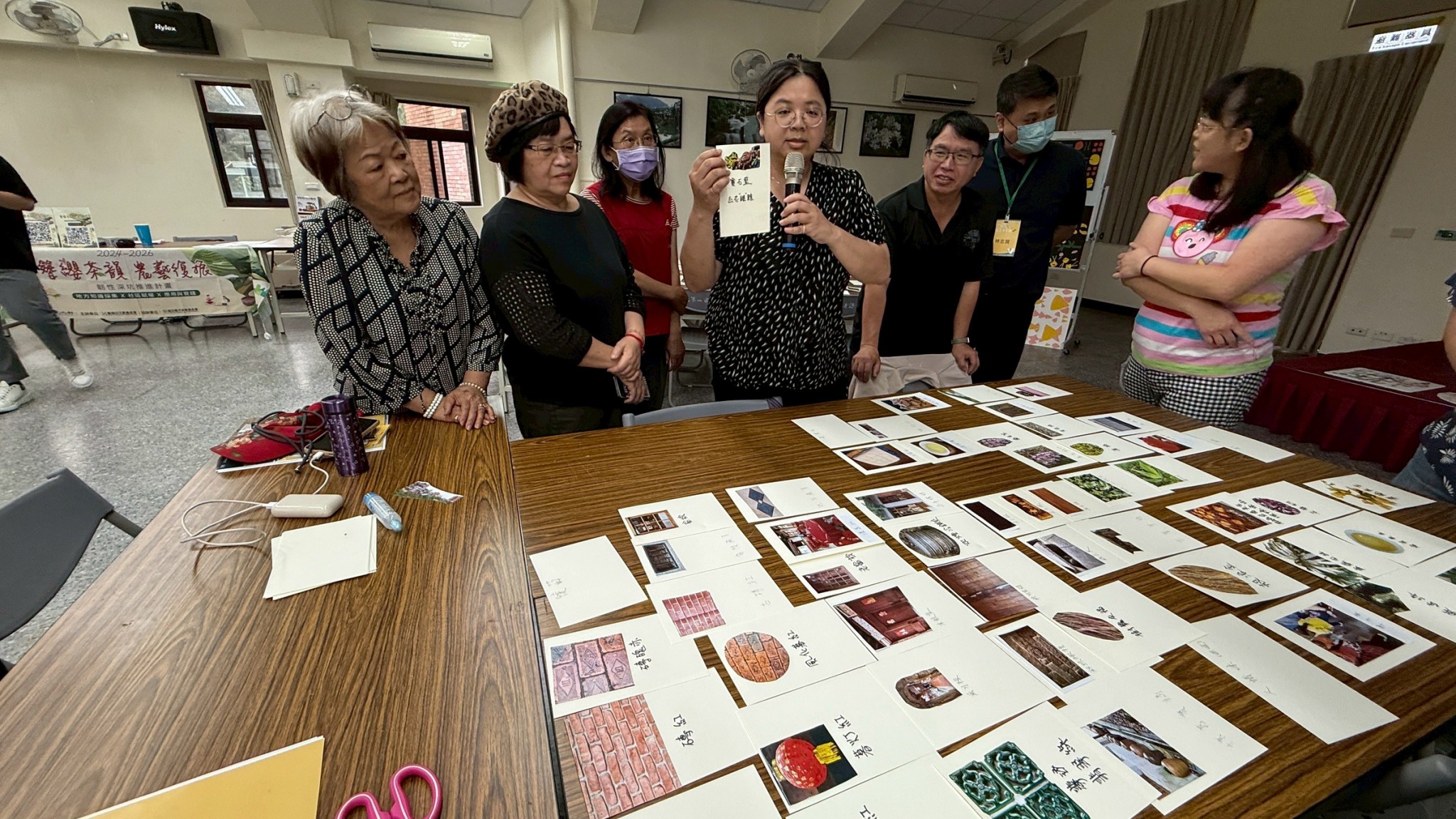 「深坑色協作工作坊」由鄭福田文教基金會主辦,本計畫團隊協助辦理。由中國科技大學視覺傳達設計系魏碩廷老師,教導學員從色彩體系、色彩意象座標到歸類色系,調校出茶香太妃、潮鐵灰、榖浪金、微醺巧克力、抿石藏青等近百張色卡,成為富涵地方故事的深坑色。